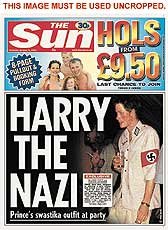 a fantasia para 250 convidados de um colega que completou 22 anos, Harry vestiu-se com um uniforme nazista. Sua foto foi publicada pelo tablóide inglês The Sun