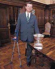 Há um objeto solitário sobre a mesa da sala de reuniões da Secretaria Estadual da Juventude, Esportes e Lazer de São Paulo, repartição que ocupa um antigo edifício no centro da capital. A taça prateada pode ser confundida com um adorno. Mas não é. Trata-se do símbolo da heróica reabilitação para o esporte do secretário estadual e velejador Lars Grael, 41 anos. Foi conquistada no domingo 9, com a vitória de Lars e o proeiro Marco Lagoa no Sul-Americano da classe Star, de Buenos Aires, Argentina. A próxima prova é o Mundial da classe Star, entre 12 e 20 de fevereiro. Lars estará lá. A vitória de domingo 9 seria apenas mais uma se o velejador-secretário – com seus dois bronzes olímpicos – tivesse uma carreira normal. Mas se tornou a primeira prova de alta performance internacional vencida por ele desde que perdeu a perna direita num acidente estúpido em setembro de 1998, época em que estava no auge. A atual vitória serviu para provar ao mundo que não é um ex-atleta. Pensa até em disputar a classificação para os Jogos de Pequim 2008, “só por disputar”. Teria que eliminar o irmão Torben e Robert Scheidt, este, aliás, derrotado por ele na Argentina.