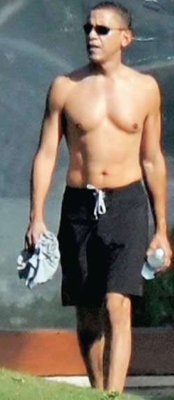 Foi assim, bem à vontade, de bermuda e sem camisa, que o presidente eleito dos EUA, Barack Obama, foi fotografado de férias no Havaí, no domingo 21. Exibindo ótima forma física, ele curtiu uma caminhada na praia.