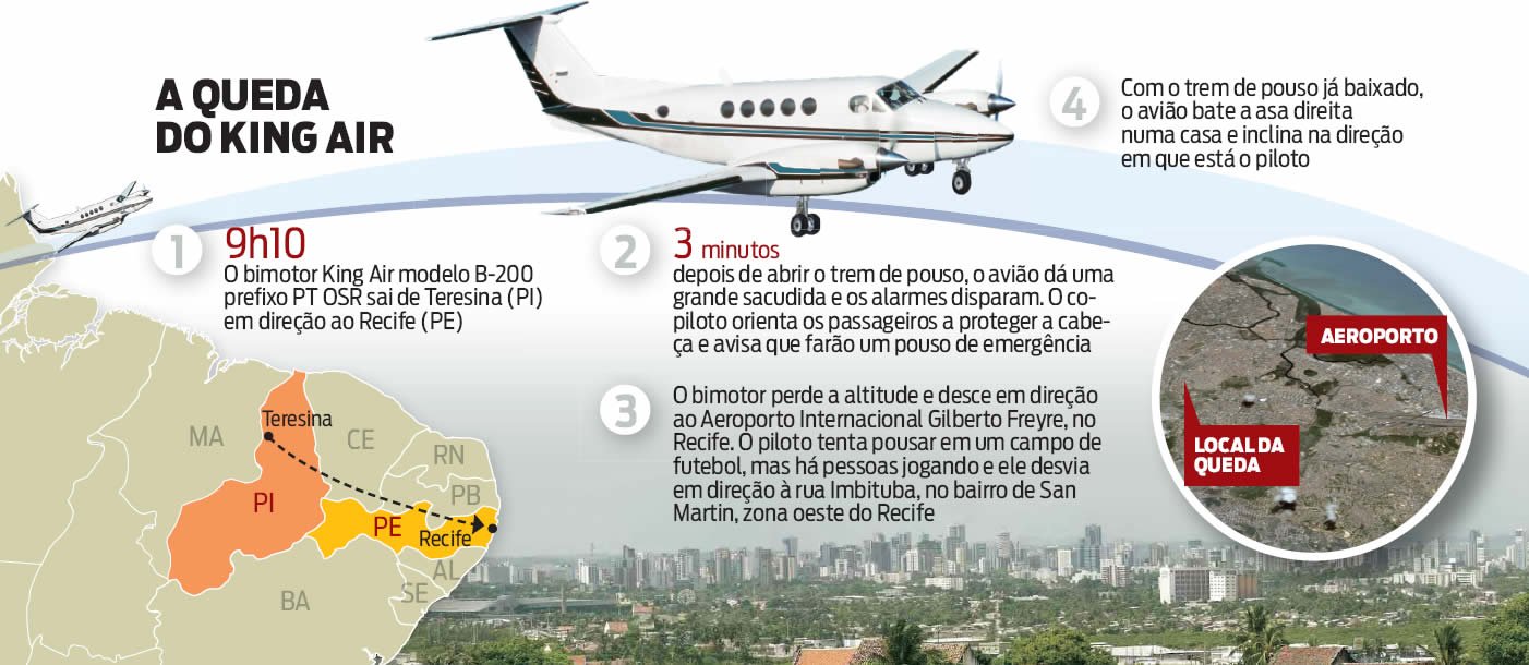 O relatório com a causa da queda do PT-OSR deve levar até 90 dias para ficar pronto. Mas é bem provável que o deputado só esteja vivo pelo mesmo motivo que gerou o desastre. Suspeita-se de uma pane seca – por alguma razão, a gasolina acabou antes do pouso no Aeroporto Gilberto Freyre – e graças a isso o avião não explodiu. Sete casas foram interditadas pelo Corpo de Bombeiros, uma deverá ser demolida. Três, dos 16 moradores que estavam nas casas, foram levemente feridos por estilhaços de telhas.